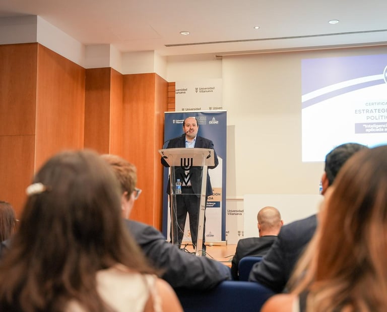 Consultoría política y formación internacional con enfoque en estrategia y comunicación.